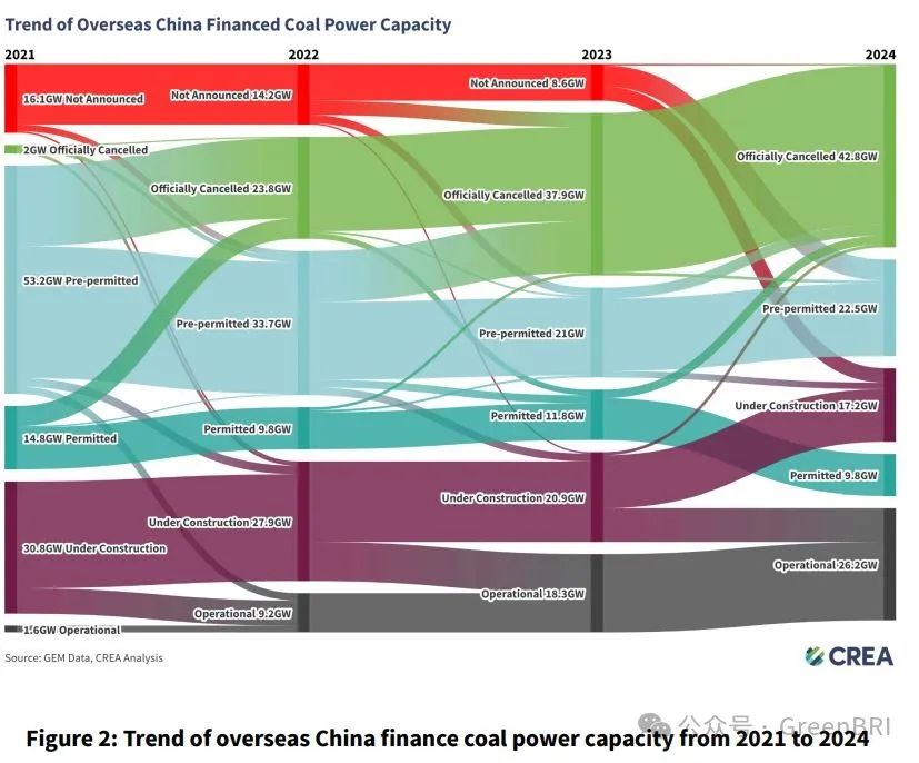 图1:中国参与或支持的煤电项目在2021年至2024年间的变化趋势