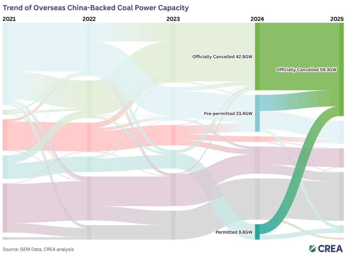 能源与清洁空气研究中心(CREA)与亚洲气候行动者(PACS)今日发布的最新报告显示,中国的“不再新建境外煤电项目”承诺(以下简称“‘海外退煤’承诺”)自2021年以来已取得重大进展。全球24个国家累计59.3吉瓦(GW)的有中资参与的煤电项目被正式撤销,避免了约61亿吨的全生命周期二氧化碳排放,这一减排量超过第二大排放国美国全年的排放总量。但报告同时警示,由民营中企主导的海外“自备煤电厂”正凸显成为该承诺的主要漏洞之一。
